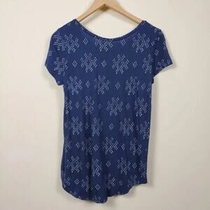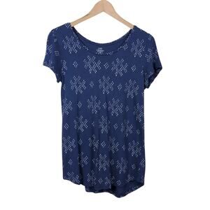 GAP Luxe Luxueux Short Sleeve Top Navy Blue White Print Women Size S