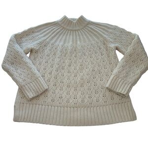 Madewell Pointelle Stitch Mockneck Merino Wool Cream Sweater Women’s Size Medium
