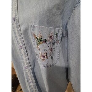 Vtg. Christine Alexander Lady SZ L denim shirt hummingbird embellished coastal