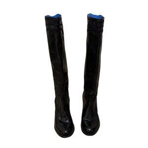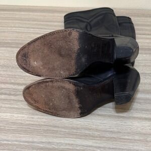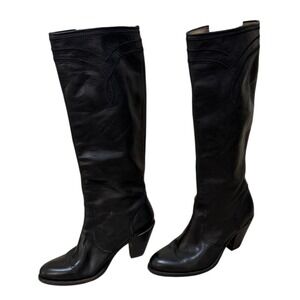 FRYE Boots Women 9 Black Leather Knee High Cowgirl Heel Festival Western Ranch