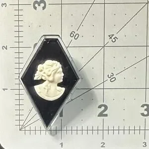 1940s retro vintage clear black cream white lucite cameo figural brooch
