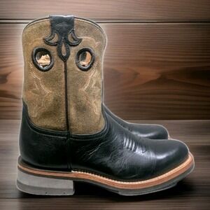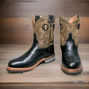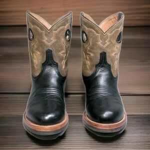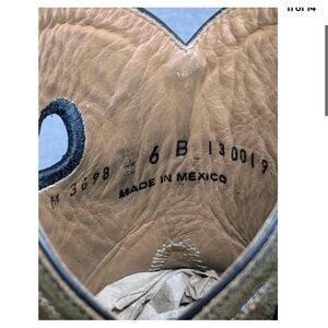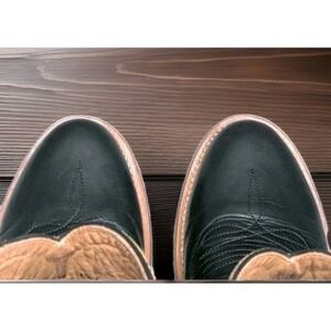 These boots are in great pre-owned condition with authentic western character. The high-quality black leather vamps show light, natural creasing at the flex points, while the shafts remain sturdy and well-shaped. The technical rubber outsoles show minimal even wear and have plenty of life left. Clean interiors with no odors. Please see photos for a detailed look at the exact pair you will receive.