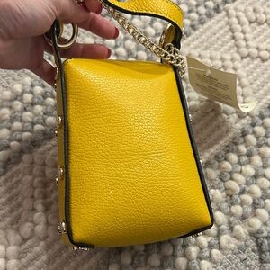 Elevate your style with this real leather (excellent quality) Yellow purse. This chic accessory features a striking yellow hue and a unique bee embellishment, perfect for adding a pop of color to any outfit. Crafted with premium materials, it offers both elegance and durability. Made it Italy and new, never used with tags.