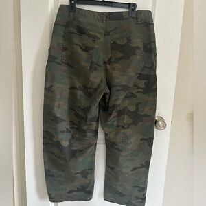 Trendy cropped pants with a classic camouflage pattern. Comfortable and versatile for casual wear.