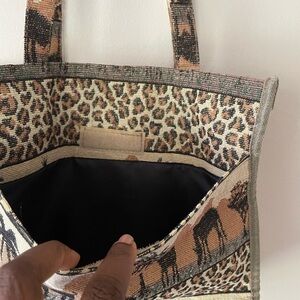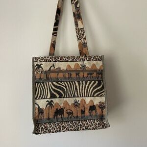Vintage 80s Safari Animal Print tapestry tote bag vacation beach resort travel