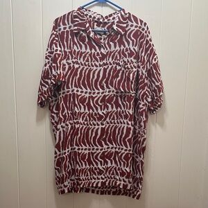 Chic red and white pattern. Casual button-down style. Perfect for everyday wear.