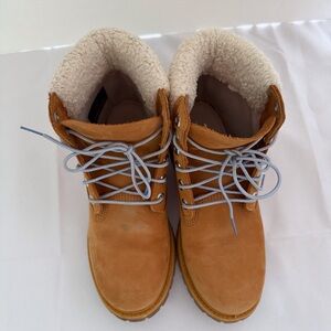 Timberland teddy fleece lace up boots light tan cream sherpa women’s 7 EUC