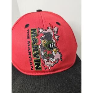 Vintage Looney Tunes Marvin Martian Snapback Hat 1997 Embroidered Red Black