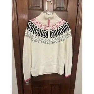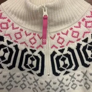 T by Talbots 1/4 Zip Sweater Fair Isle Women’s Small Pink Multicolor Wool Blend