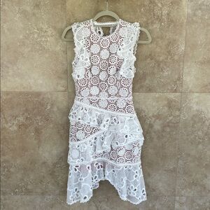 Alexis Dress Arleigh White Lace Ruffle Open Back Cocktail Mini XS Zipper Floral