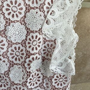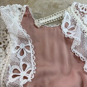 • White floral lace overlay with nude blush lining for contrast