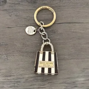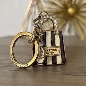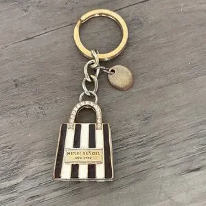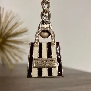 Henri Bendel keychain featuring classic Bendel centennial stripe with brown and ivory. All rhinestones are in tact.