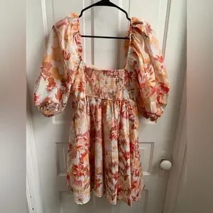 Abercrombie & Fitch Emerson Poplin Dress Small/Tall Orange & Pink