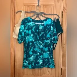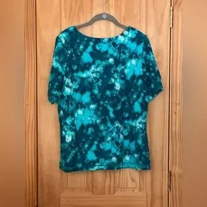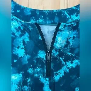 Moroccan TieDye color. Plus 18. Features short sleeves and front zipper. Perfect for beach or pool.