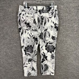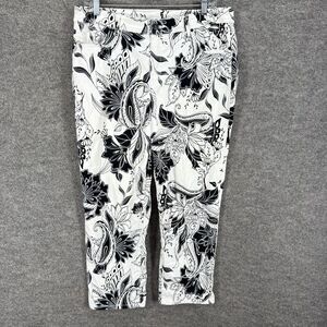 Chico's Cropped Pants Women 2 White Floral High Rise Flat Front Skinny Cotton