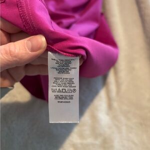 Lou & Grey sleeveless midi dress in magenta. Features a relaxed fit with side pockets and built in bra. Lightweight polyester fabric makes this a perfect sporty dress to layer in spring and summer. Size Small.