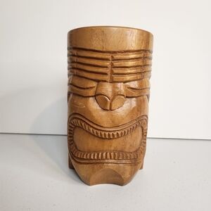 Vintage Hand Carved Wooden Tiki Mug Large Handle Monkey Pod Wood Barware Decor