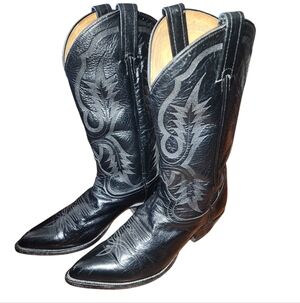 Vintage Tony Lamas 2923 Black Leather Pointed Toe Western Cowboy Boot Size 91/2B