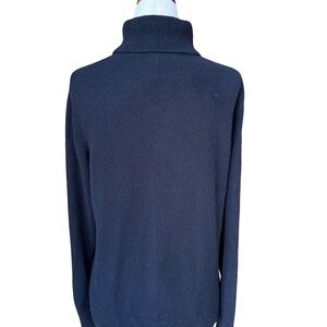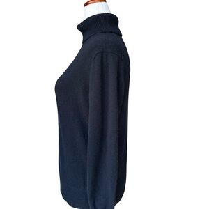 Elegant black cashmere turtleneck for warmth and style. Ideal for versatile wear. Color looks navy in pics but is a deep black - no fading. This sweater is in excellent condition.