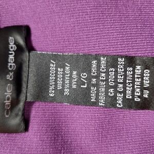A lovely purple sleeveless viscose/nylon blend top. Lower square neckline. Generous sleeve opening. Size Large. Cable & Guage.