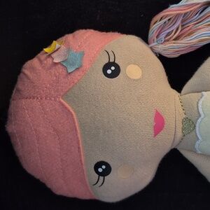 the shine doll II, shine doll 2 mermaid by the kind culture company, the doll kind llc. mermaid with rainbow. about 18 inches long. has all 3 stars on head, but the edges are peeling off. bottom fold fin has been cut, please refer to pics.