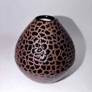 Elevate your space with this handcrafted ceramic vase featuring a striking black glazed surface with raised bronze crackle texture. Its sculptural, modern form makes it perfect as a standalone art piece, shelf accent, or centerpiece for contemporary, industrial, or organic-modern interiors.