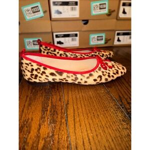 J McLaughlin Leopard Print Calf Hair Ballet Flats Red Trim Bow Women's 7.5