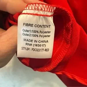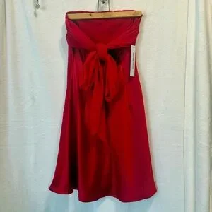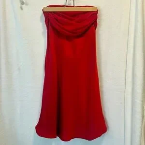 Sexy Valentines strapless, red dress with shoulder drape and tie in the back. Very silky feel, 100% polyester. Romantic dress