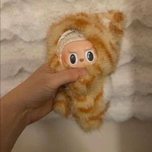 Labubu cat costume one side Plush Orange and White Striped outfit for a labubu NWOT