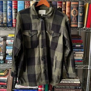 Lucky Brand oversized green & black plaid shacket shirt jacket Medium Pre-Owned