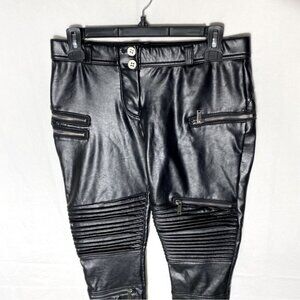Hugz Jeans Black Faux Leather Low Waist Moto Biker Style Skinny Pants 10
