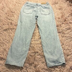 Pacsun High Rise Straight Jeans. Light wash. Button fly. Intentional distressing in back pockets and hem. 100% cotton. Excellent condition. Size 26.