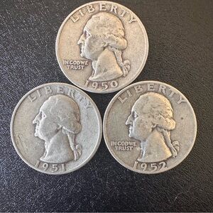 1950–1952 Washington Quarters Lot of 3 – 90% Silver U.S. Coins
