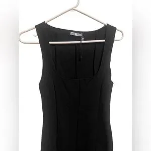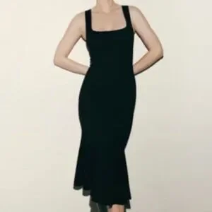 🆕 Zara Structured U-neck Flared Mermaid Midi Dress in Midnight Black NWOT