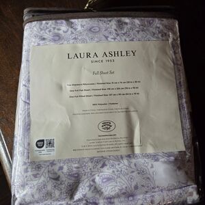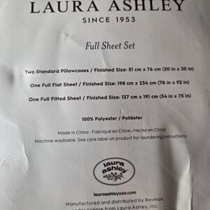 Laura Ashley full sheet set featuring a charming pink bow design on a white background. New condition, never used. Smoke-free home.
