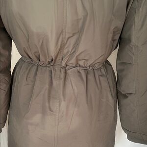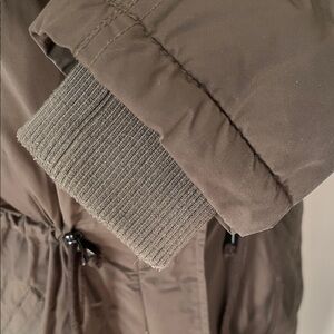 Chic olive puffer with plush faux fur-trimmed hood. Ideal for cold weather. The faux fur trim can be removed. It’s full length puffer in good condition.