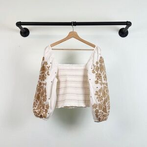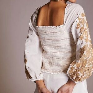 NWT Anthropologie Smocked Embroidered Puff Sleeve Square Neck Top