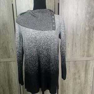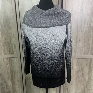 Adrienne Vittadini split cowl neck metallic hombre sweater women's M-