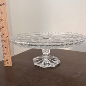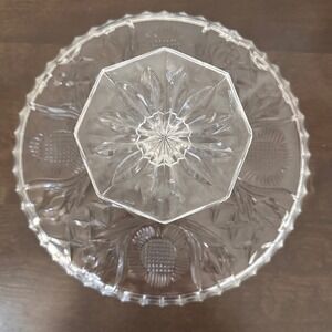 Vintage Clear Glass Pedestal Cake Stand Sunflower Design Footed Cake Plate