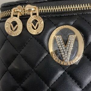 Elevate your style with this chic black quilted bag featuring a luxurious chain strap and signature V-logo. Perfect for any occasion.