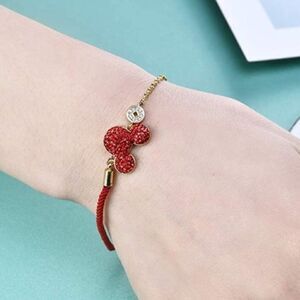 Brand New - Mickey Mouse 18k Yellow Gold with White Diamond Cubic Zirconia CZ and Ruby Red Crystal Rhinestone Half Roped Half Chain Adjustable Bracelet
