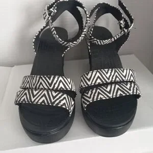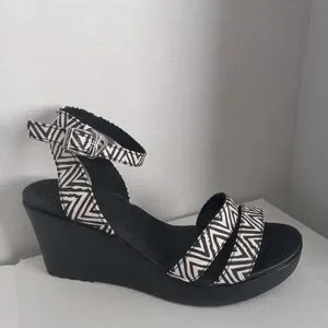 Crocs Black and White Patterned Wedge Platform Sandals Anckle Strap Sz 10w