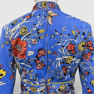 Miss Serbin Vintage 1960s Blue Floral Maxi Dress Butterfly Print Long Sleeve S