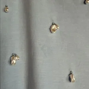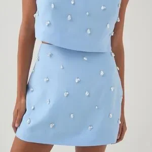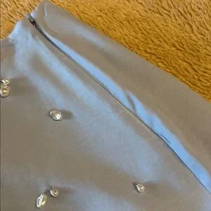 Pretty mini skirt with front embellishment with pearl bead accents and side seamless zipper (zipper works perfectly). Logo label at back waist.