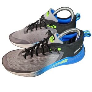 New Balance Fresh Foam Fast running shoes, a lightweight and responsive option for your athletic endeavors. These shoes feature a breathable mesh upper in a versatile gray with striking blue and neon green accents. The dynamic Fresh Foam X cushioning provides exceptional comfort and energy return with every stride. The secure lacing system ensures a locked-in feel, while the durable rubber outsole offers reliable traction. Designed for performance and style, these shoes are ready to support your training goals.