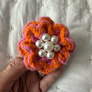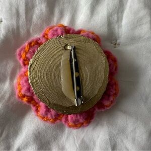 Handcrafted Pink and Orange Crochet Flower Brooch