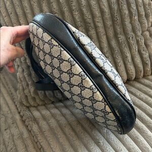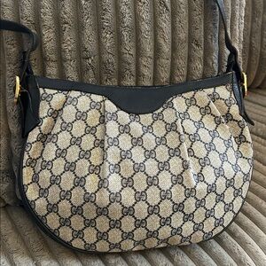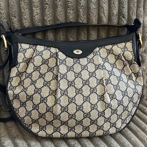 Gucci GG Monogram Supreme Purse Crossbody Shoulder Clutch Bag Vintage Coated Canvas Navy Iconic Italian Leather Slouch Hobo Ruched Pleated Chic Stylish Elegant