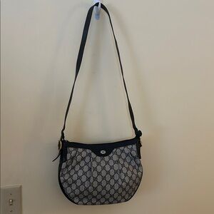 Gucci GG Monogram Supreme Purse Crossbody Bag Vintage Navy Italian Leather