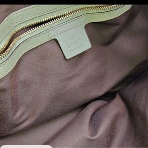 Stylish Gucci tote with a beige and olive design. Perfect for everyday elegance. Features signature pattern and braided handles.
