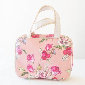 Betsey Johnson cosmetic bag, floral makeup bag, pink toiletry case, Betsey Johnson floral bag, travel makeup organizer, rose print cosmetic case, bow makeup bag, cute cosmetic bag, vanity makeup case